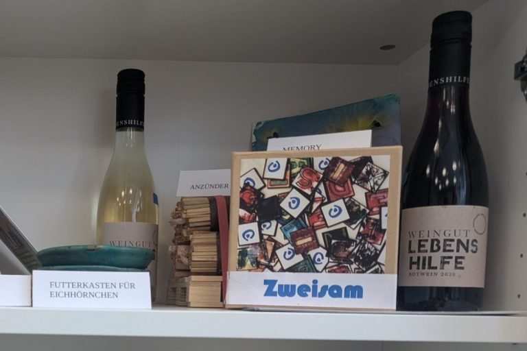 Dagmar Herrmann spendet dieses Regal der Lebenshilfe. Die Sachen werden durch die Lebenshilfe angefertigt und der Erlös geht natürlich wieder dorthin zurück.